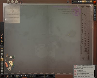 Dopiero stosując - poprzez OpenFileEditorViewer - UI znane z SH3, zaprzyjaźniłem się z TWoS. Boli, że pewne mody na interfejs nie działają, ale zdaje się jednak, że tylko w tym modzie, kampania jest grywalna i ma sens. Co mi się podoba? W pierwszej misji, mamy zadanie zaatakować statki w Zatoce Gdańskiej. W pobliżu kręci się niszczyciel ORP Wicher i stawiacz min ORP Gryf. Są szybkie i po ataku na Polski frachtowiec, szybko idą w naszym kierunku. Co ciekawe, a raczej nieco dziwne, po zanurzeniu słychać wyraźnie ASDIC. Jeśli uda się uniknąć bomb, to po kilkunastu minutach okręty te odpływają. Można wyjść na powierzchnię. Ale summa summarum, przyjdzie nam ponownie je spotkać. Po nawiązaniu kontaktu, zszedłem do radiooperatora i nakazałem wysłanie meldunku o kontakcie. Okręt pod wodę i czekanie. Długo nie trwało jak przybył Niemiecki samolot, przeganiając wrogie okręty - w Open Horizon na odsiecz przybył sam Schleswig-Holstein w asyście dwóch niszczycieli - tym samym pozwalając na wyjście z głębin. To dopiero sam początek mojej znajomości z tym modem, ale to dobry początek.