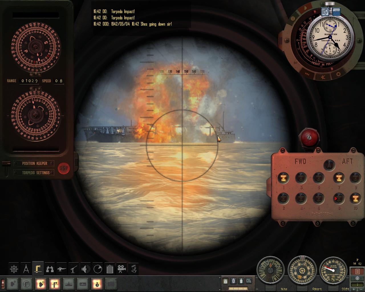 A tu się stało coś dziwnego - jak widać na screenach lotniskowiec zaczął się nagle palić 9scena na dole) (a torpedy szły, szły, szły) [scena z boku po lewej] po czym eksplodował - a wtedy torpedy znikły...