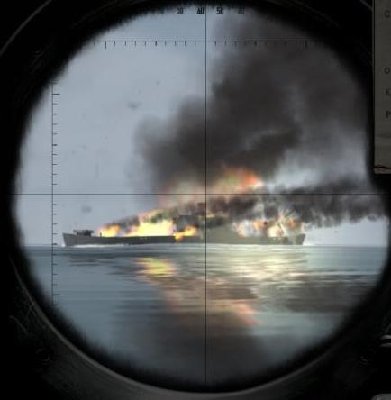 Przychodziłem tylko na dwie przerwy reklamowe, gdyż oglądałem film. Podczas tych przerw, szybciutko na peryskopową i raz walnąłem na ślepo rufową w DDka, a drugi raz walnąłem wszystkie 4 w stronę dymów i ogni (statków nie widziałem), nie czekając na wynik zszedłem z powrotem na 130 na cichym biegu i do widzenia. Podsumowując: lepiej mi idzie jak nie ma mnie przy komputerze