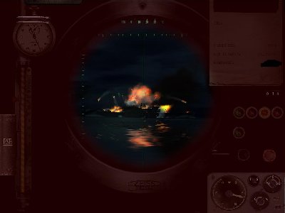 Konwój zbliżał się, a wokół było pełno niszczycieli. Cicha prędkość 1-2 węzły i skradamy się do konwoju. Dymy na horyzoncie coraz bliżej powoli mijamy 3 eskortowce - ufff nie zauważyli nas i wchodzimy do konwoju. Gdzieś z boku wybuchają bomby, a my zmieniamy kurs na S, by płynąć razem z konwojem. Blisko nas jakieś 100 m przepływa LST, ale nie zauważa peryskopu. Już mamy strzelać torpedę, kiedy z czerni nocy wyłania się transportowiec wojsk. Zmiana planów, ustawienie okrętu i strzelamy 2 torpedy - w celu - statek nie tonie. Strzelamy trzecią by dobić, lecz ta wybucha przedwcześnie. Mimo to trup staje się trupem. Cel w następny transportowiec - poszła ostatnia zładowana torpeda - w celu - statek przechyla się, zatrzymuje ale nie tonie. Przeładowujemy torpedy, a z rufowej wyrzutni strzelamy akustyka do eskortowców kręcących się w pobliżu - coś trafiliśmy ale wynik niestety nie jest znany. Po przeładowaniu torpedy dobijamy trupa, zaś my oddalamy się w bezpieczniejsze miejsce, patrząc na zegarek - 5min, 4, 3, 2, 1 i koniec - wreszcie.