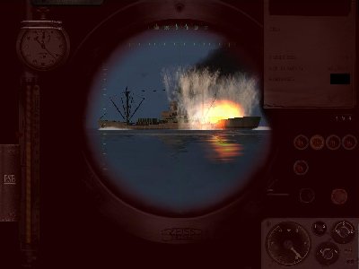 Bardzo udany dla mnie patrol, choć mogłem zatopić więcej. Na początku zauważyłem dwie fregaty płynące kursem równoległym do mnie, więc je spokojnie przepuściłem i oczekiwałem na konwój. Na szczęście w pewnym momencie obejrzałem się do tyłu, i zauważyłem następną fregatę która kogoś szukała. 1 torpeda w celu. Uff to mam spokój. Następne przypłynęły frachtowce. Pierwszy cel troop ship 3 torpedy zmarnowane. Morale załogi spadło poniżej 50 %, następnym celem okazał się chemical freighter przewożący uran do zbudowania bomby atomowej. 1 torpeda i po nim Później obrałem na cel C2 może ten uszkodzony przez PL_Cmdr_Blue, niestety następne pudło. Cargo Steamer 2 torpedy w celu, nie mógł tego przeżyć. Kiedy konwój zaczął się ode mnie oddalać pozostał passenger cargo na dogodnej pozycji do ataku. 1 torpeda i po nim Kiedy już myślałem że nic więcej tu nie ma, zauważyłem lotniskowiec 3 km ode mnie. I znowu błędnie go zidentyfikowałem jako Illustious Kurs zbliżeniowy odpalam pierwszą torpedę w celu. Bardzo ciekawe było to że nie było ognia na pokładzie a co pewien czas wybuchały mu samoloty na pokładzie. Stanął w miejscu. Po przeładowaniu torpedy posłałem mu "coup de grace", bojąc się odpowiedzi ze strony innych graczy Na końcu patrolu oddaliłem się spokojnie od konwoju i opijałem razem z załogą zwycięstwo