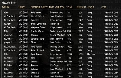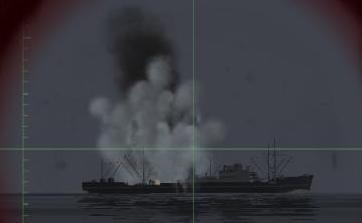 Toteż pełen wściekłości i rozgoryczenia postanowiłem zrobić "Crazy Finka" i z furią berserkera natarłem z 88-ką na cały konwój. Jako że frachtowce nie były uzbrojone, a eskorta dość oddalona, zajęta polowaniem (+mgła) poczynałem sobie całkiem zuchwale. Zręcznie lawirowałem między pociskami wrogów, najpierw posłałem na dno T2 potem mały frachtowiec. Dopiero po pierwszym trafieniu w okręt dałem zanurzenie alarmowe, zszedłem na 180 metrów i dość łatwo zgubiłem pogoń. I koniec patrolu.