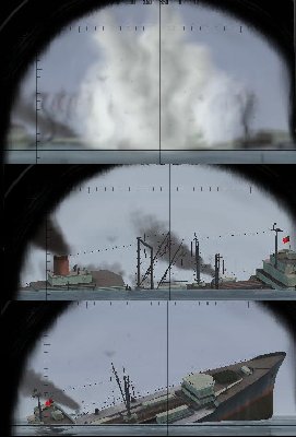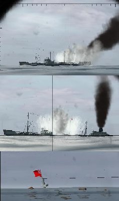 Zgodnie z odprawą skierowałem się na północ. Mimo, że wody pod kilem było zaledwie 12m, płynąłem pełną parą na spotkanie wroga. Nie trzeba było długo czekać, gdy pojawiają się zwiastuny konwoju - eskortowce. Zanurzenie i podejście do ataku przebiegło perfekcyjnie. Fregata przepłynęła, nawet nie przeczuwając, że przez chwilę była na celowniku.