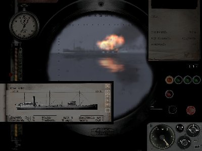 Prawdopodobnie to ja trafiłem statek szpitalny (oceniłem go szybko na brytyjskiego pasażera) ale trafiła tylko jedna torpeda i uciekł mi (na szczęście). Wynkało to pewnie z chęci zatopienia przeze mnie pierwszej jednostki online. W końcu dopadłem rudowca i trafiłem go trzema torpedami - chciałem mieć pewność. Szczęśliwy z tego faktu przyglądałem się jak tonie zamiast dać nurka. Z tyłu nadjechał na pełnej prędkości niszczyciel i nim zdążyłem osiągnąć sensowną głębokość obrzucił mnie bombami -prawdopodobnie trafienie bezpośrednie. Ciągle jeszcze się uczę, ale z wami nabiorę praktyki.