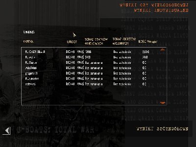 co za patrol ... patrze w peryskop i nie wierze zamiast tłustych rybek do złowienia na które miałem cały arsenał to widzę tył innych Ubootów cała naprzód ... w końcu wyjście na powierzchnie .... nadal nic hydro cisza brak kontaktu ehh by uspokoić załogę włączyłem gramofon i tak sobie płyneliśmy i płyneliśmy i ....... 30 min później dym na horyzoncie zbliża sie namiar 75 lornetka w ręke i patrze ALARM !!!! 10m 20m szybciej do cholery 30m ... ping! ping! wyłaczyć ten gramofon cisza na okrecie 80m 1w głebiej !! ping! ping! ...plum plum ... okret wojenny namiar 40 ;90; 75; 0 plum plum ....ping ping głebiej ..... KIA
