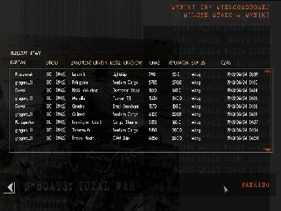 Patrol rozpoczął Drzymek od ostrzału latarnika, czym pięknie zwabił eskortę. Mnie się udało przejść i wpłynąć w dobrą rajkę. Pierwszy schodzi MC potem T3. Oba dostają po jednej. Potem z rufy mierzę do kolejnego MC. W chwili kiedy naciskam cyngiel, Medium dostaje torpedę. Cóż moja już w drodze i trafia. Medium schodzi. Podział. Kolejny na rufową wychodzi Cargo Steamer. Dostaje jedną ale nic mu to nie przeszkadza. Za chwilę dostaje od kogoś drugą. Jego losy mnie już dalej nie interesowały z powodu braku torped w rufowych. Potem męczyłem się jeszcze z Cam Shipem. Zszedł dopiero po 3. W międzyczasie jeszcze jeden MC z rufowej. Po ostatniej torpedzie do Cam Shipa wycofałem się. Mając jeszcze 1 torpedę w rufowej strzeliłem do statku który majaczył w odległości 3,5 km. Był uszkodzony. Niestety przedwybuch.