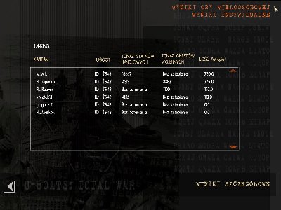 Początkowo moim celem miał być tradycyjnie, konwój. Jednak po otrzymaniu meldunku, zdecydowałem się zaatakować krążownik. Wyszedłem na powierzchnię i bez ładowania akumulatorów, całą naprzód pognałem w jego kierunku. Oczywiście w meldunku była mowa, iloma dokładnie niszczycielami będzie obstawiony (5 DD). Udało mi się minąć pierwszego, trzy rybki salwą weszły co do sztuki. Nie dałem mu żadnej szansy. Powolutku zacząłem schodzić w głębiny i ładować ostatnie dwie rybki. Potem równie wolno wróciłem na persykopową żeby się rozejrzeć. Konwój dość daleko. Bliżej stary pasażer (oświetlony) w towarzystwie niszczyciela. I to oświetlenie nie dawało mi spokoju. Atakować, czy nie ? Jednak zimna krew wzięła górę. Skierowałem się na konwój. Kiedy wszyscy mieli już puste wyrzutnie, zaatakowałem małego tankowca. Z powodzeniem. A prułem do niego na złamanie karku. Po drodze wywąchały mnie dwa DD-eki; jeden z nich zrzucił bombki. Ale było to już za moją rufą. Jednak oba były blisko i muszę przyznać, że już dawno tak szybko nie zbierałem danych na cel. Dla mnie patrol był bardzo ciekawy, nie miałem czasu na nudę. Wilku jak zwykle zgarnął wszystko. Gratulacje. Brawa dla pozostałych kapitanów. Weług mnie wcale nie było łatwo. Do zobaczenia na następnych patrolach.