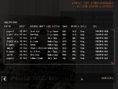 W tę piękną, arktyczną noc wyruszyliśmy na spotkanie przeznaczenia. Nasze stado składało się z samych doświadczonych dowódców, dlatego podejście przebiegało wzorcowo. Niebagatelną rolę odegrało w tym pole lodowe, które niespodziewanie pojawiło się na naszej trasie. Statki zbliżały się z każdą chwilą. Ponieważ, jak mi się wydawało, utworzyły się dwie grupy, trzeba się było na coś zdecydować. Odbiłem lekko na prawą burtę i obrałem kurs na najbliższy cel. Nagle ze spokojnego podejścia wyrwał mnie meldunek; kpt. Reaven zgłasza KIA. A niech to. Chwilę potem kolejne KIA melduje ORP Bałtyk. Eskorta nie żartowała. Nie było czasu do stracenia. Strzelałem do czego się tylko dało. Niestety, ze zmiennym szczęściem. Ciągłe przeładowanie torped, zakłócały niszczyciele kręcące się wokół mnie i nie dające mi odetchnąć. Kilka razy byłem pingowany, a nawet nieomal rozjeżdżany. O dziwo żaden z DD nie zostawiał po sobie porcji bomb, za co jestem im szczególnie wdzięczny. Kiedy wydawało się, że w tym składzie uda nam się szczęśliwie dotrwać do końca kpt. Janko melduje o kłopotach i chwilę później zgłasza KIA. Patrol zmierzał ku końcowi. Ostatnie statki omijały mnie, był wśród nich nawet lotniskowiec, zraniony wcześniej przez kpt. Janko. Niestety nie udało mi się go dobić, choć próbowałem dwukrotnie. Ostatecznie zakończyłem ten rejs z dwoma ubitymi statkami, kilkoma zranionymi, które za nic nie chciały zatonąć, ale najważniejsze że żywy. Patrol wymagający i trudny, trzymający w napięciu do samego końca. Dzięki za grę i do zobaczenia na następnych.