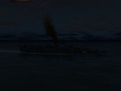 Pierwszy cel zbiornikowiec pierwsza torpeda-pudło kolejne dwie trafiają jednak wywołują niewielki pożar na pokładzie jednostki która zwalnia i odpływa.