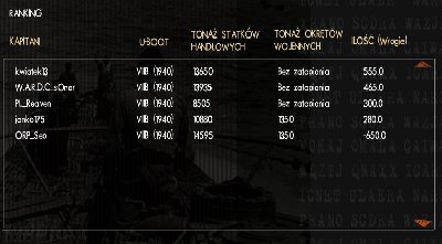 Gratulacje dla wszystkich - wiele się działo jak widać. Aż zazdrość człowieka bierze I na dodatek mój ulubiony "wróg" powiększył tonaż heh. Jeszcze Cię dorwę KRUKU