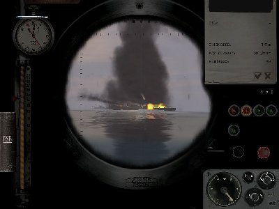 Tylna torpeda załadowana i Ocean Liner płynie, jedna torpeda w sam środek i statek zapalił się, miałem nadzieję że wybuchnie bo eksplozja na początku wydawała się duża ale Liner zwiększył prędkość i uciekł.