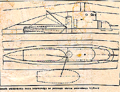 Torpeda jest odwrotnie zamontowana w motorówce, oczywiście powinna być głowicą w kierunku rufy.( to nie ja rysowałem)