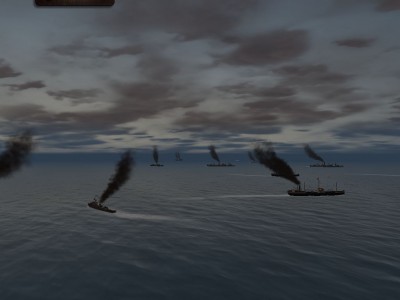 Poczekałem aż eskorta odpłynie i posłałem przedostatnią torpedę w cel. Zatonął. W zasadzie miałem ją wysłać w konwój jeszcze, ale bałem się, że 1 torpeda może nie dobić celu, a eskorta nie chciała za bardzo odpływać, abym z działa dobił węglowca... Szczęśliwie zostałem z 1 torpedą, ale małym, własnym i przywiezionym do domu tonażem.