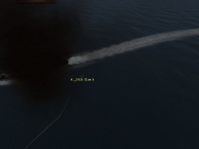 Na początek poszedłem na Grupę uderzeniową.... I zaskoczył mnie na powierzchni kuter... Za blisko na działo, to go p-lotką pociągnąłem. Wchodzę do grupy. 1 torpeda... Skręcił.. Pomiar i druga.... Nie trafiłem... Why? (a nie zauważyłem, że zablokowałem TDC na ręcznym)... Salwa dwóch kolejnych pudło (bo dałem złą szybkość zmieniając ręcznie)... I rufowa też spudłowała...