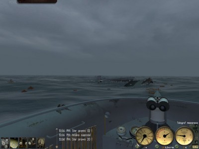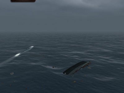 Po 10 min znowu się zanurzyłem ,żeby sprawdzić co tam rybki szepcą .Przede mną liczne statki i okręty wojenne ,a po prawej trzy dalsze pojedyncze cele . No to zwrot o 90 st i jazda . Nie eskortowany cel , będzie łatwa zdobycz . Po ok 15 min zauważyłem pierwszego cargo stimera . No to plusk po d wodę , zbieram dane do ataku .... srtrzelam i pudło , Cel walił "całą na przód " za nim kolejny ,to samo . Jako trzeci płynął jeszcze większy cel ,jakiś spory transportowiec coś ok 13000 , byłem już realatywnie blisko ok 800 m , ale znowu pudłuje . Po wynurzeniu się cel daje całą na przód i zwiewa . Zniesmaczony tym atakiem wyszukałem na hydro inne cele . Obrałem nowy kurs i po 10 min natrafiłem na konwój chroniony prze 3dd , . Dość niefortunnie sie ustawiłem i nie za bardzo miałem jak okazję strzelać ,ale jakoś się poskładałem i zdołałem trafić ostatni z 3 old pasangerów . Troszkę mi zajeło jego zatopienie . Na zakończenie z kpt Lutiensem podjeliśmy rozbitków .
