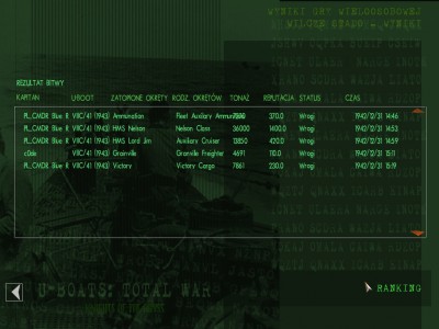 C0de ciąga na siebie eskortę, a ja wchodzę. 2x torpeda do amunicyjniaka, tonie. Rufowa do rudowca.. Nie trafiła... Widzę, że ktoś zaatakował Nelsona... Ale mam świetną pozycję.. A jak on dobije? A jak nie? Trzeba ryzykować. I dobiłem go dwoma.. Potem okazało się, że to sOnar.