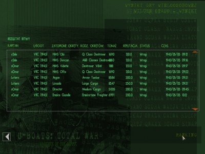 Dzięki chłopaki za udany patrol gratulacje dla Sonara i Code za te 4 niszczyciele, które zatopili oraz Finka za to, że przetrwał z takimi uszkodzeniami