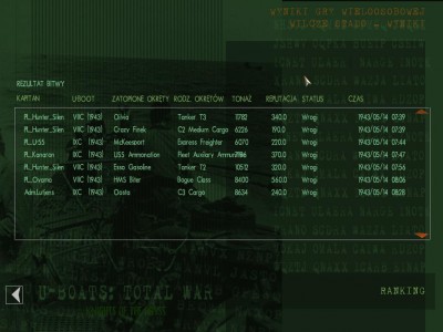 Zanim mi te rybki przeładują cały konwój przepłynął. Naokoło pojawiły się niszczyciele, ale ja spokojnie płynę, bo nie pingują, niestety okazało się, że pingują... tuż przed taranowaniem. Trochę udało mi się uniknąć, nawet zobaczyłem w oddali C3 wolno płynącego to mu salwę 2 torped posłałem, jedna trafiła. Jednak w końcu oberwałem z bomby w dziób i było po mnie.