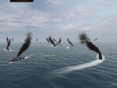 Płynę sobie spokojnie 2w prostopadle do konwoju, jak tu nagle wszystkie eskortowce dostały szału i zaczęły płynąć na mnie..., ale zaraz , one nie płyną na mnie tylko na kogoś za mną ???!!!