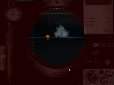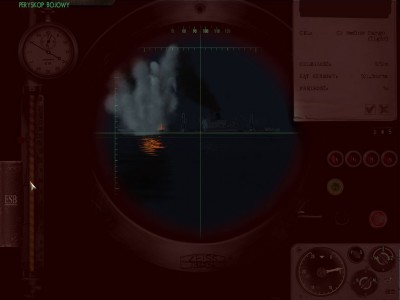 Jestem pod kiepskim kątem ustawiony, więc postanawiam podpłynąć na dogodniejszą pozycję. Wtedy pomyślałem, że taki ładny płonący, nieruchomy cel kogoś może zwabić i mi go sprzątnie. Ponad cała naprzód i prujemy pod wodą na dogodną pozycję, szykuję płytką, szybką, kontaktową rybkę. Zalewam wyrzutnię i robię ostatni zwrot, żeby mieć go mniej więcej na namiarze 0. Trochę ten zwrot trwał, a ja myśląc o tym żeby mi go ktoś nie zwędził postanawiam posłać rybkę wcześniej. Na namiarze 340 torpeda poszła, a ja się cieszę, że nikt inny go nie trafił. W tym momencie torpeda trafiła... ale nie moja ;< Po kilku sekundach dopiero moja weszła i go zatopiła.
