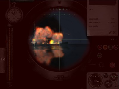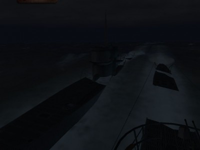 Płynę na peryskopowej, po dłuższym czasie dymy: z jednej strony dd-ek, z drugiej handlowiec. Handlowiec okazał się amunicyjnym, posłałem kilka rybek, niestety jedna wybuchła (z mojej perspektywy w śruby, z perspektywy Luciaka: w ogóle, więc przyjmijmy, że nie trafiłem). Na rufie pojawił się Auxiliary, posłałem rufową, niestety zrobił unik, posłałem dziobową, trafiłem, niestety dalej płynie. Na rufie pojawił się Cargo Steamer, posłałem rufową, niestety Luciak trafił wcześniej i zatopił. Zaczynam gonić płonącego Auxiliarego. W pobliżu nie ma niszczycieli, ryzykuję i płynę pełną mocą pod wodą i gonię go. Zbliżyłem się na jakieś 2,5-3 km. i zdziwiłem się: w tej chwili zatonął.