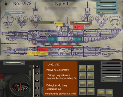 -Jeden niszczyciel śledzony przez hydro, innych brak, 3 martwych, zniszczona obudowa kiosku, rozładowane baterie, niesprawny prawy elektryk, lewy diesel wygląda obecnie gorzej, niż przed naprawą.