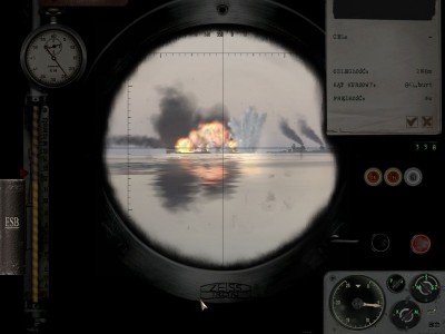 Patrol ciekawy, chociaż nie miałem za bardzo czasu grać tego wieczora i co jakiś czas musiałem odchodzić od kompa. Wyszedłem przed czoło konwoju i zaatakowałem. 1 torpeda trafiłem w dziób Arrowa, lecz ten nawet nie zwolnił. 2 torpedy wysłałem do Gorkiego i tu ... niewypał.