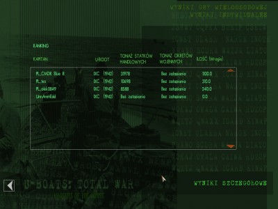 No widzisz ja miałem pecha bo trafiłem tylko na tamte maluchy.Potem uciekałem na całej na przód zeby nie nadziać się na zabójców Tesa i UnnAmmEdd-a bombek spadło więc zeszedłem na 160 i sobie idę.Potem się wynurzam i wachta widzi okręt (kuter torpedowy)a Że 5 min do końca no to obsadzić 105mm i się tak bawiłem.Dostał 10 ppanc stracił działko i zwiał.