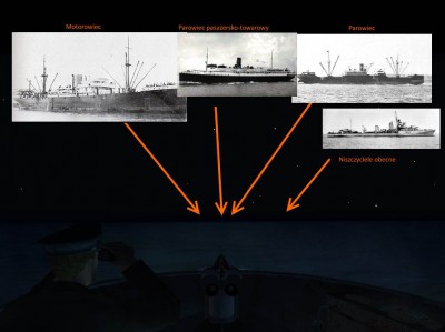 unieruchomiono jeden z frachtowców dobito 2 torpedami