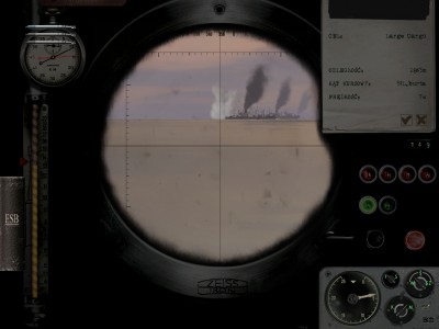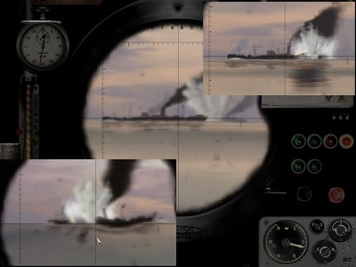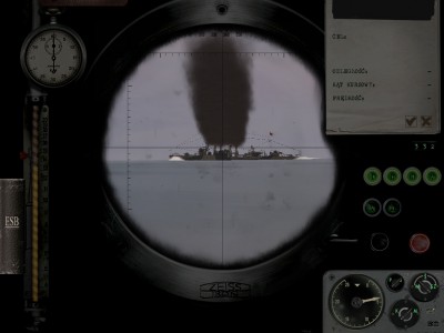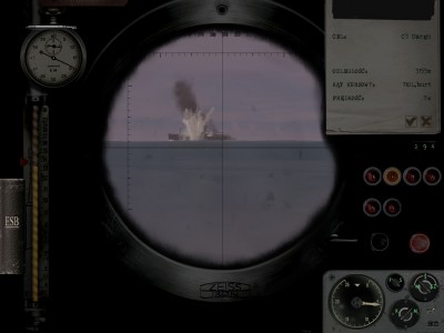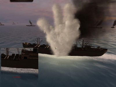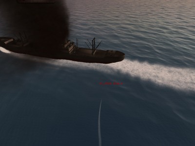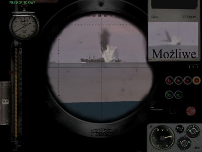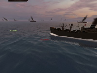 Patrol był całkiem ciekawy, ja bardzo lubię późne lata wojny. Płynę w zanurzeniu do konwoju, skutecznie wymijam eskortę. Ustawiłem się na dobrej pozycji blisko lewej flanki konwoju. Walę do Cargosów po 2 torpedy. Obydwa odrazu toną. W międzyczasie Olek strzela do Clemsona z tyłu. Tak więc cała eskorta poszła do niego. Jeden niszczyciel typ C, będąc 1.5km ode mnie, namierzył mnie hydrolokatorem. Dziwne, bo między nim a mną płynął jeszcze nie zatonięty Cargo. Tak więc w teorii wiązka nie mogła do mnie dolecieć. No ale trudno. Biorę zwrot na rufę do niego, otwierając 5-tą wyrzutnie z T4 Falke, głębokość 4,3m. No i strzelam mniej więcej na jego kursie. Właściwie byłem pewien, że trafię, gdyż niszczyciel nie zygzakował. No i czekam, niestety mój akustyk miast trafić w Ddeka, trafił w tonące już połówki frachtowca! :bum: :bum: :bum: