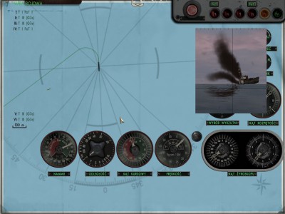 Po dłuższym czasie płynięcia 4 w. widzę dym. Zwalniam do 1w. i wpłynę od flanki, muszę jedynie minąć jednego Clemsona. Po chwili Clemson robi zwrot i płynie mniej więcej na mnie, czyli na Olka za mną... DD-ek takie zwroty robił, że nie wiedziałem gdzie właściwie uciec. Na całe moje szczęście się zdecydował przepłynąć obok mnie. Gdy był już za mną zaczął pingować... Ale tak jakoś się nie spieszył. Chwilę później oberwał akustykiem Olka i miałem spokój. Został unieruchomiony.