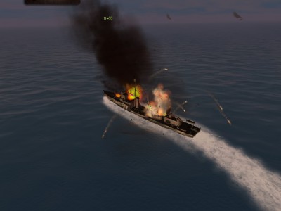 Wtedy to jeden Hunt mnie wykrył i zamiast gonić trupy mnie pogonił. W 6 ataku urwało mi ster kierunku (jeden) i rufowe stery głębokości. Bałem się już, że po mnie, ale na szczęście lotnictwo dorwało tego Hunciaka (a właśnie coś mi nie pasowało, że ma 5 minut opóźnienia z kolejnym atakiem).