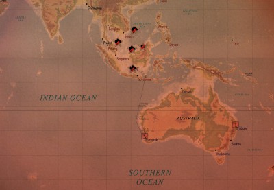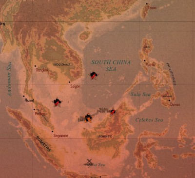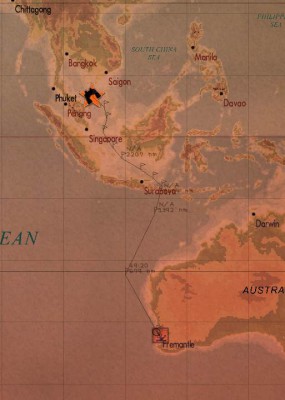 Odtąd zaczęła się trudniejsza część rejsu. Chociaż Ocean Indyjski jest ciągle nasz, to Japończycy kręcą się na nim. Dodatkowo zadanie wejścia i patrolowania Zatoki Tajlandzkiej wymaga dostanie się na morze Jawajskie. Uznałem, że miedzy wyspami Bali i Lombok uda nam się przecisnąć. Przejścia musimy dokonać w nocy.