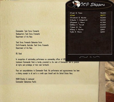 17:30 - Otrzymano wiadomość z CoSubPac. English zostaje nowym ComSubPac, a Lockwood zastępuje u nas Wilkesa.