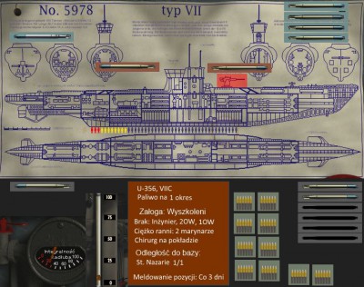 Niech czynią swoją powinność. Czy któryś z U-Bootów potrzebuje torped? Możemy przekazać 4 torpedy (jedna rufowa, trzy dziobowe). Nadajcie meldunek, że wracamy do bazy.