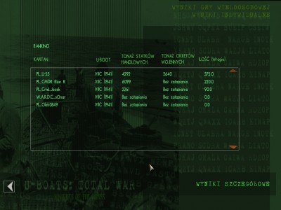 Na 2 minuty przed końcem patrolu, wykryto mnie i ... pomyliłem klawisze, zamiast zanurzenia, wcisnąłem wynurzenie a następnie szasowanie balastów . Pięknie wyskoczyłem na powierzchnie prosto pod lufy niszczyciela. Był tak zaskoczony, że tylko parę pocisków mnie trafiło i zdążyłem się zanurzyć. Uff Koniec patrolu.