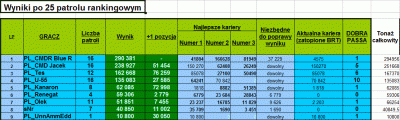2. Robię, ale czasem się przypadkiem zdarzy, że zapomnę Jak zapomnę o patrolu tuż przed tabelką lub o patrolu 100% SURV to żaden problem, uzupełni się. Ale jak zapomnę o środkowym patrolu w czasie, którego ktoś miał KIA... To się robi ciężko, bo nie napisałem edycji do takich przypadków.