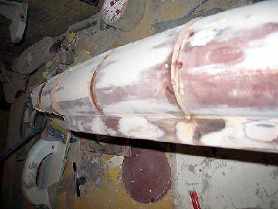 Właśnie buduję jego większegi brata o dł 168 cm. niestety do wykonanego i wypolerowanego już kopyta, byłem zmuszonu wprowadziś korekty, chodziło o poprawienie kształtu obu burt od linii wodnicy w górę. Ponacinałem kadłub w pionie, wstawiłem w w/w nacięcie żeberka korygujące i od nowa gips, szlif , szpachei i polerka.