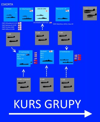 Naloty zlewały się w jedną całość. Wyglądało to jakby atak następował za atakiem. Hardy spojrzał na notatki, które prowadził. 6 godzin temu zestrzelili w ataku 6 He111 i 2-3 Ju88. Połowę atakujących. Na dodatek Hunty zatopiły jednego U-Boota. Okręt wyskoczył na powierzchnię i zatonął. Nie uratowano żadnego niemieckiego marynarza. Później Tovey wysłał wiadomość, czy odesłać ten jeden amerykański niszczyciel. Wydawało się to wieki temu, gdy odpowiedział, że go potrzebuje. A ataki wciąż trwały. Obecnie było po północy, a ataki wciąż trwały. Ju88 i FW200 podchodziły do kolejnych ataków, a konwój prowadził ogień w ich stronę. Kolejne frachtowce stawały w ogniu, a spieniona woda przesłaniała widok. Na dodatek zaczynał się sztorm.
