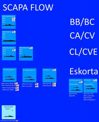 -Sir. Na podejściu do Scapa Flow wytworzył się mały zator. Wróciły TF3 i TF4, a także pancerniki z manewrów. Przypłynął też jakiś "pływający kapeć" z żurawiami, Albatross, że został przekazany do Home Fleet na pańską prośbę.