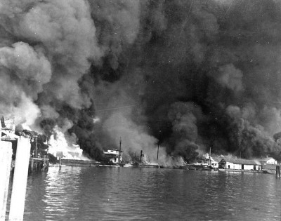 Po nalocie marynarze zaczęli opuszczać schron. Baza Cavite stała w ogniu. Frankie rozglądał się dookoła i nie mógł poznać tego miejsca. Nadajniki radiowe były zrujnowane, w miejscu magazynu torped widniał wielki, płonący krater, magazyny stały w ogniu. Pod niebem zasnutym czarnym dymem Frankie powoli zmierzał w stronę nabrzeża, potykając się o gruzy. Gdy dotarł do nabrzeża, dostrzegł najpierw holowanego na wodach Zatoki Manilskiej USS Seadragona. Na dziobie okrętu płonęła farba, ale załoga holownika miała sytuację pod kontrolę. I wtedy dostrzegł USS Sealion, pochylonego na rufę przy nabrzeżu. Roztrzaskany dziób i kiosk wystawały nad wodę, strasząc wyrwami i przestrzeleniami.