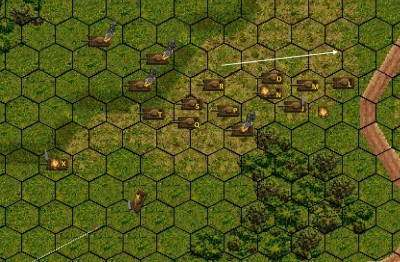 - Bonny, zejdźcie z pola widzenia Rosjanom cofając się poza krawędź i przygotujcie do szarży ale 200m na południe od miejsca gdzie stoicie. Co z czołgiem 312?
