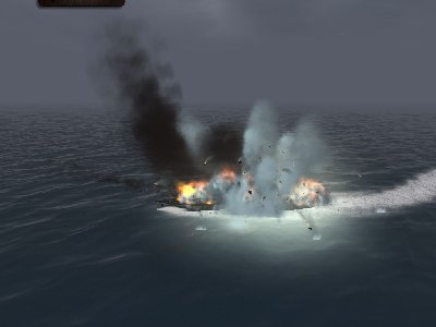 Ale jednocześnie następuje eksplozja nadbudówki na rufie, która zabiera 20 punktów wytrzymałości.