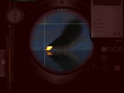 Później miałem trochę kłopotów z niszczycielami. Rzeczywiście było ich tyle, że nie mogłem zliczyć. W czasie gdy ja, nie wiedziałem za co się złapać, rozłączyło gregorego. Kiedy się trochę uspokoiło, nadpłynęła druga grupa tym razem z lotniskowcem. Niestety byłem na takiej pozycji, że praktycznie nieomal przejechał mi po plecach. W dużo lepszym położeniu był natomiast kpt. Janko, który najpierw zranił, a potem próbował dobić ten łup, ostatecznie jednak nie osiągając zamierzonego celu. Kpt. Reaven w tym czasie dzielnie bronił się przed niszczycielami; pooczątkowo dwoma, potem dołączyły do nich dwa kolejne. Zamierzałem mu przyjść z pomocą (miałem jeszcze dwie rybki), kiedy za rufą złapałem kontakt na mały o ile można to tak nazwać konwój , składający się z tankowca i chyba statku amunicyjnego. I tak oto na koniec mi się poszczęściło; przepuściłem Clemsona, który prowadził tę grupkę i już bez pudła posłałem idącego praktycznie na mnie T2 na dno. Zadowolony ( no, prawie ) zakończyłem rejs.