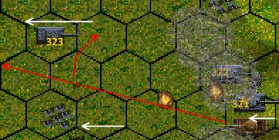 (żółte - planowany ruch. Leoś Albrechta znika właśnie za tym drzewkiem poniżej)