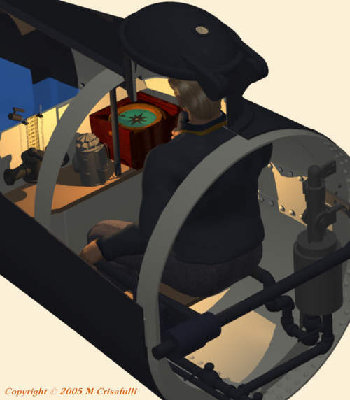 o Available views of the aft bulkhead area are extremely cluttered. I am confident of my valve placement but the routing of the plumbing to the bulkhead is speculative. I've placed the tank inlet to avoid the flywheel. Brian Hicks emphasizes the difficulty of distinguishing the mechanics in aft section but supports this placement based on his observations.