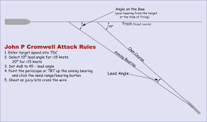 Jeśli znajdę w domu to prześlę Ci genialny schemat wektorowy rozpisanego ataku metodą Cromwell`a. Co więcej - tą metodą można strzelać również z kątów ostrych wzgędem kursu celu a to już daje Ci ogromną przewagę w momencie nagłych, nie planowanych ataków na szybkie konwoje