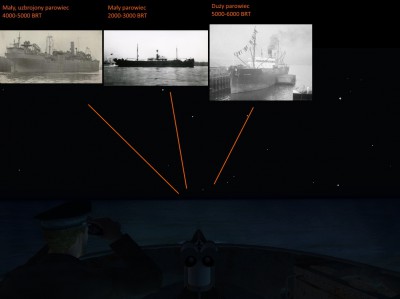 Duży parowiec – ok.10000 BRT – uszkodzony wcześniej przez kogoś, tak go oszacowaliśmy