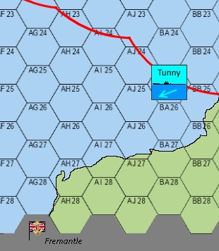 USS Tunny od tygodnia szedł w stronę Australii, zbliżając się do bariery ciągnącej się przez środek oceanu. Archipelagu Marianów i Karolin. Trasa USS Tunny biegła pomiędzy tymi archipelagami, jednak zbliżali się do obszaru, w którym odległość do baz wroga zmniejszała się do około 250-300 mil. Był to pierwszy, trudniejszy odcinek. Drugi, jeszcze bardziej trudniejszy, czekał ich podczas przejścia na morze Banda.