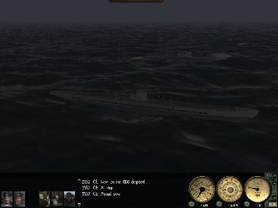No to ja się pochwalę!!! Ja na GWX na półnoć od Irlandii spotkałem w sztormie (srednia mgła i deszcz), będąc w zanurzeniu brytyjski okręt podwodny typu S jak na załączinych screenach! 8 (słownie: osiem) torped mu posłałem, bo się zawziąłem, i wkońcu RAZ tylko go trafiłem ale to wystarczyło... widać ślad po wybuchu pod kioskiem na prawej burcie (to ciemne miejsce) + bąbelki uchodzącego powietrza... Pozdrawiam! A i jeszcze spotkałem suby ale swoje: 1 jako mleczną krowę i 1 płynący W KONWOJU alianckich merchów (eskortę wytłukliśmy)... Kilka razy słyszałem odgłos śruby suba bo w zanurzeniu ma inny głos niż na powierzchni... ale wtedy grałem już na 100% i nie mogłem zobaczyć... Delfiny też spotykałem i będąc w zanurzeniu słyszałem. Cześć!